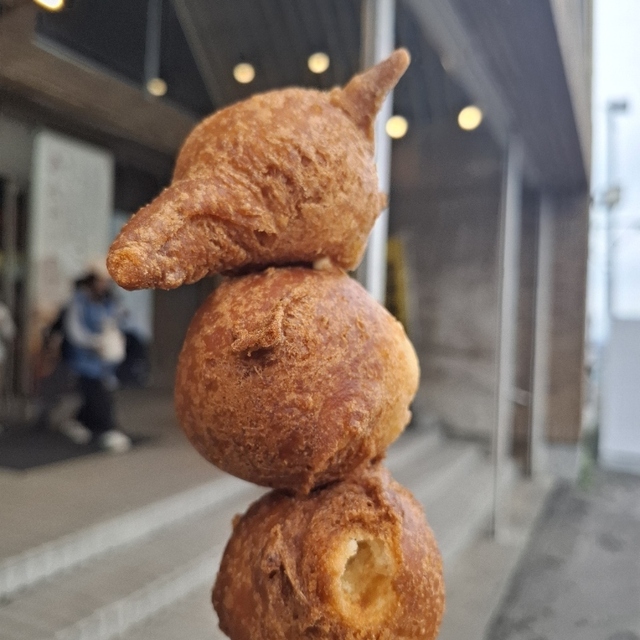 中山峠の揚げいもを食べたのは多分20年ぶりくらいかもしれん。ゆでたジャガイモにホットケーキミックスのような生地をつけて揚げたものです(アメリカンドッグのジャガイモバージョン、という感じかな?)